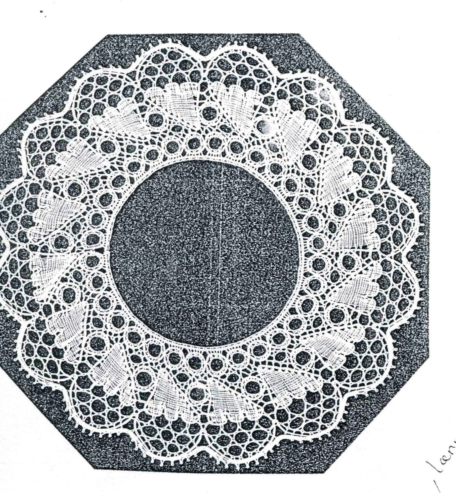 Klöppelbrief " Skaeve blad" rund und Rand Kniplehuset